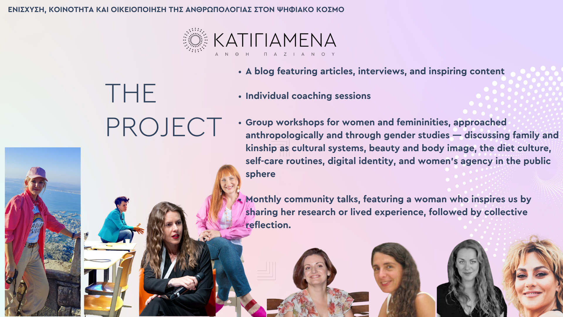 My name is Anthi Pazianou, and I am the creator of KATI GIA MENA (“Something for Me”) — a women’s and femininities’ empowerment program grounded in an anthropological and gender-aware approach.